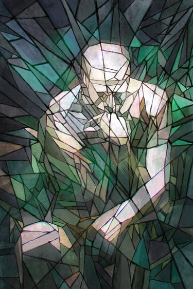 'The Overthinker' is my second mosaic. It's based on my digital painting 'Shattered Thought', which I created in 2023 as a reward for some of my collectors.